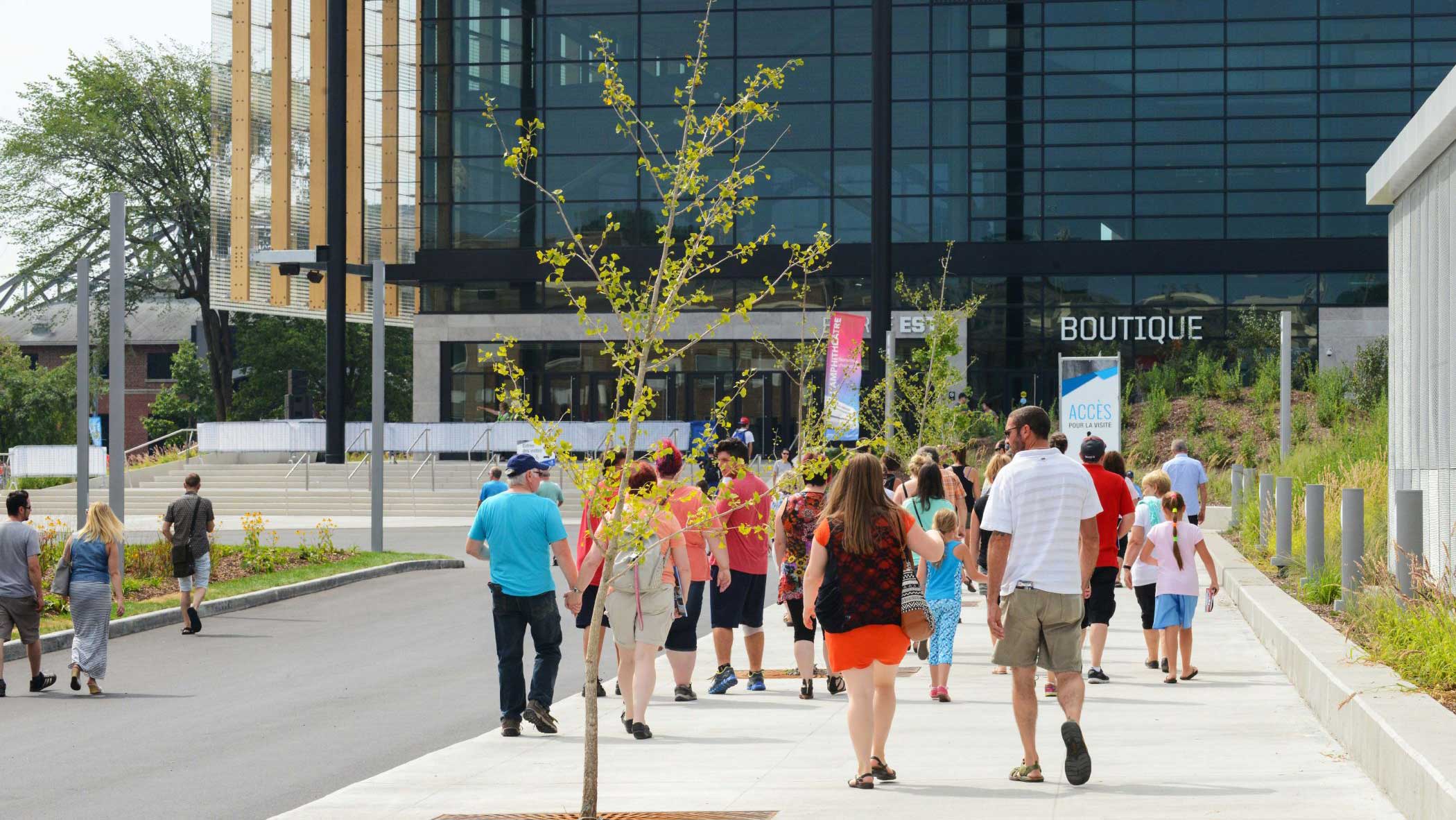 Le site extérieur animé à l’année et doté d’une aire de jeu, d’une forêt urbaine, de tables de pique-nique et d’un parcours piétonnier enchanteur.