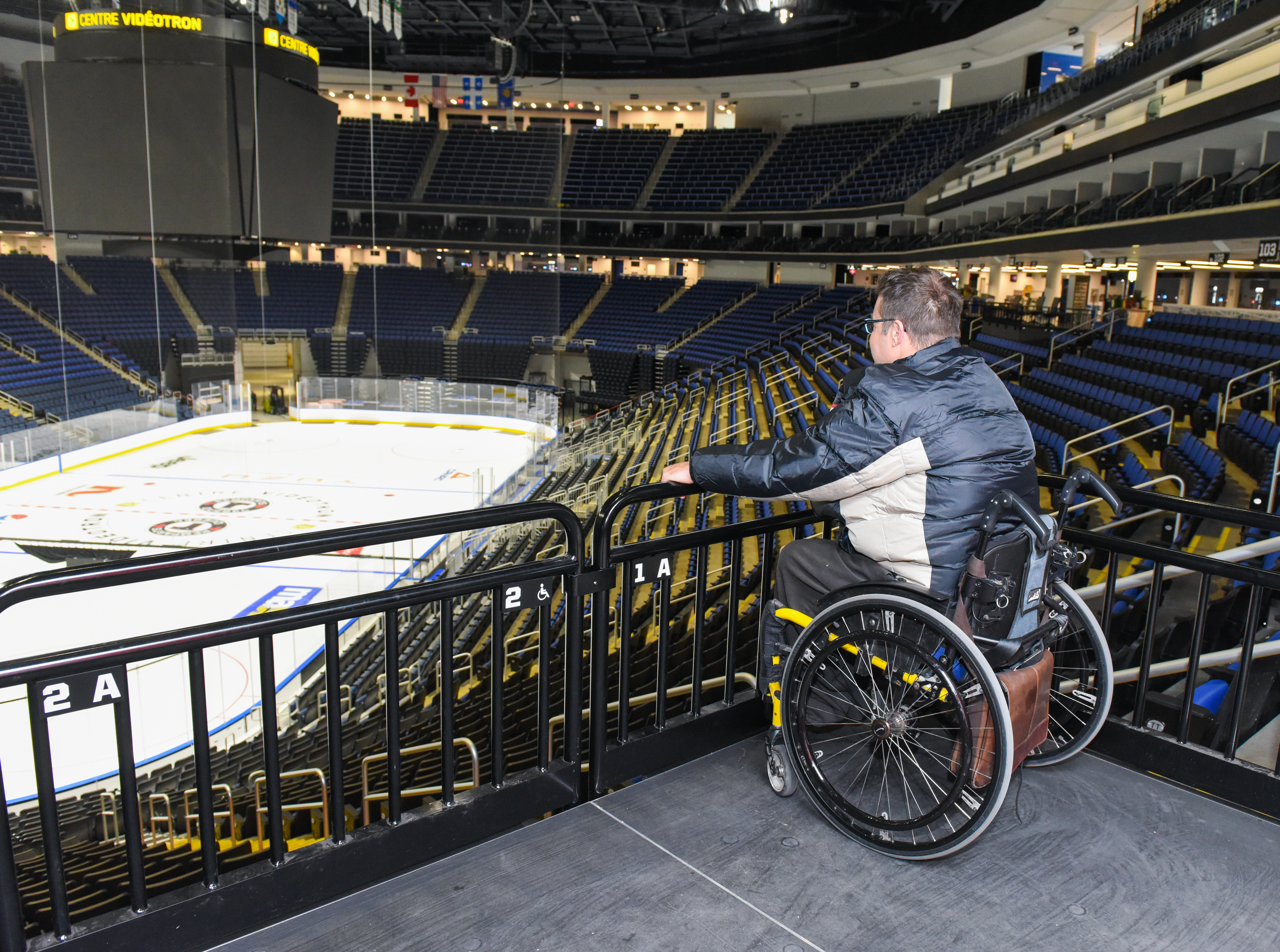 Le Centre Vidéotron et l’aire des gradins sont équipés d’un système d’assistance auditive pour personnes malentendantes.
